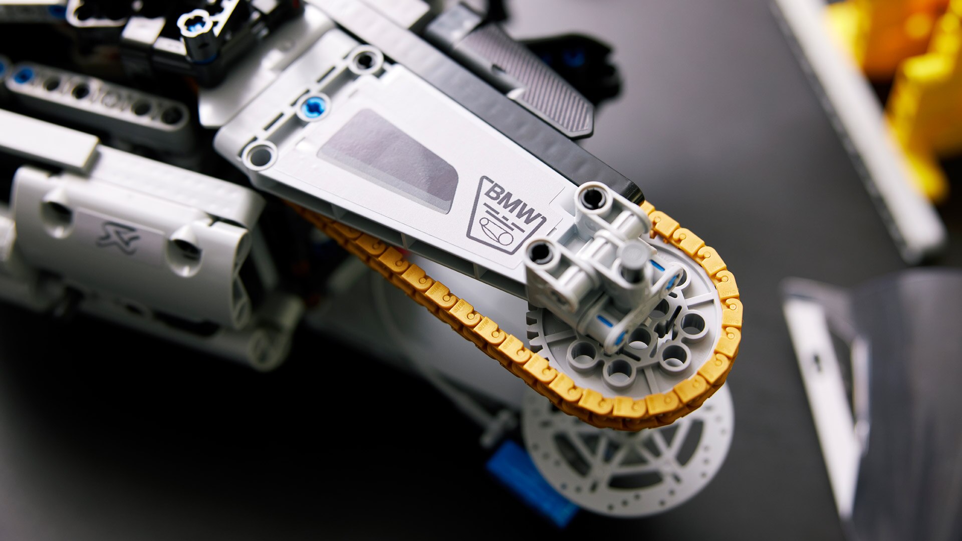 Масштаб 1:5 став справжнім випробуванням для дизайнерів. Однак він також дозволив їм більш точно, ніж будь-коли раніше, відтворити лінії, розміри та характерні для M RR компоненти: кожен елемент повинен мати оригінальний еквівалент - аж до карбонових і фрезерованих деталей ексклюзивного пакета M Competition. Тільки передня та задня підвіски витримують вагу 1,4 кг. Справжній інженерний подвиг, для якого спеціально розроблялися нові елементи LEGO® Technic. Колеса, гальмівні диски та вітрове скло також повністю виготовляються на замовлення та проходять всебічні випробування перед серійним виробництвом. Прямо як справжній M RR.
