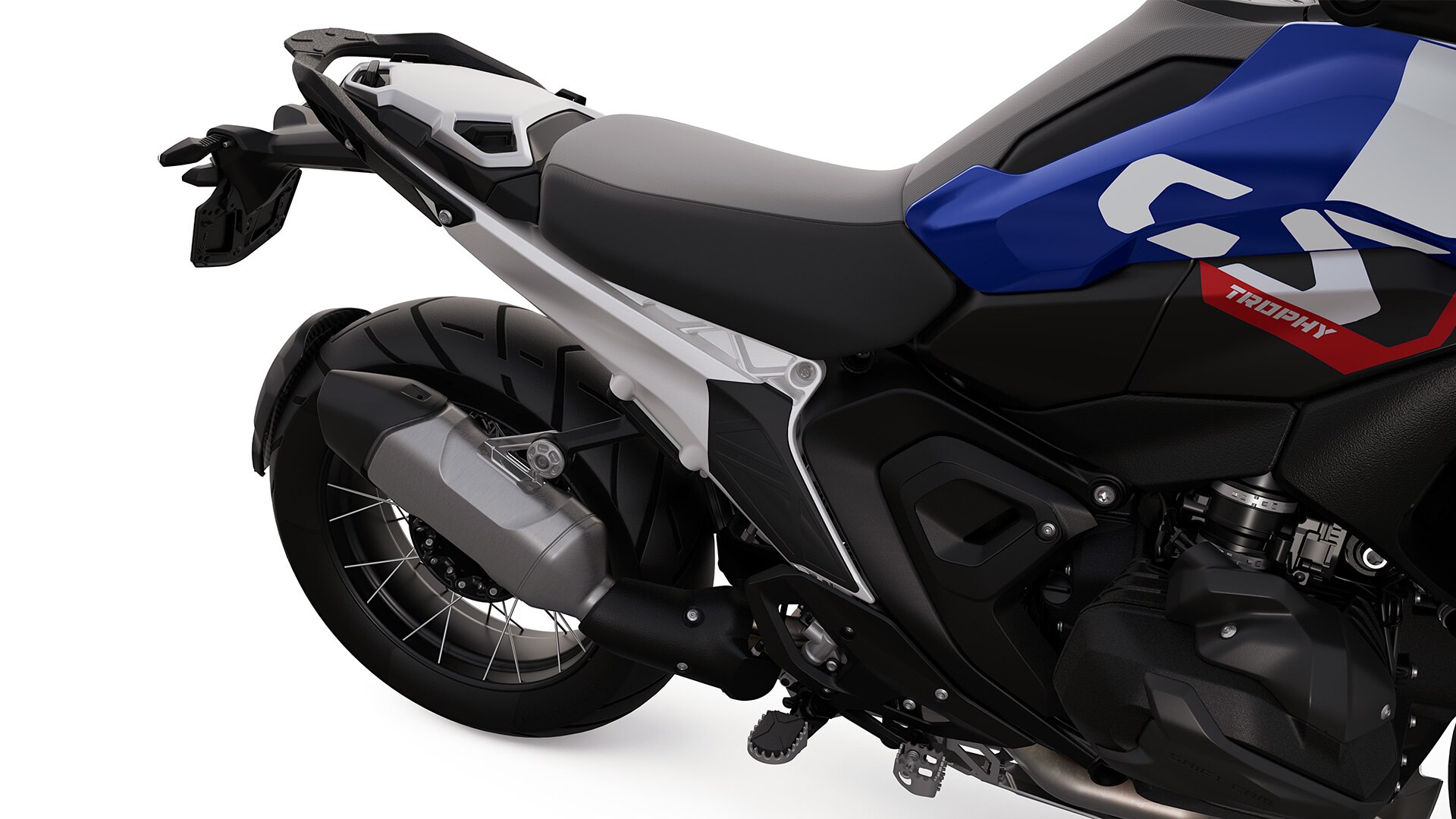 Розширте свою зону комфорту. Пласка панель бака та коротка задня частина забезпечують найвищу свободу рухів. Додатковий великий захист рами дає безпеку навіть під час виконання амбітних маневрів. Високе сидіння водія з висотою 870 мм у поєднанні зі спортивним пасажирським сидінням забезпечує естетику та ергономіку сидіння Rallye, а в поєднанні з оббивкою, яка простягається до кришки бака, цей простір утворює ідеальний та надкорисний вузол у вашому мотоциклі. Концептуальний поділ сидіння забезпечує більшу ергономічну різноманітність за допомогою вбудованого регулювання нахилу сидіння водія.